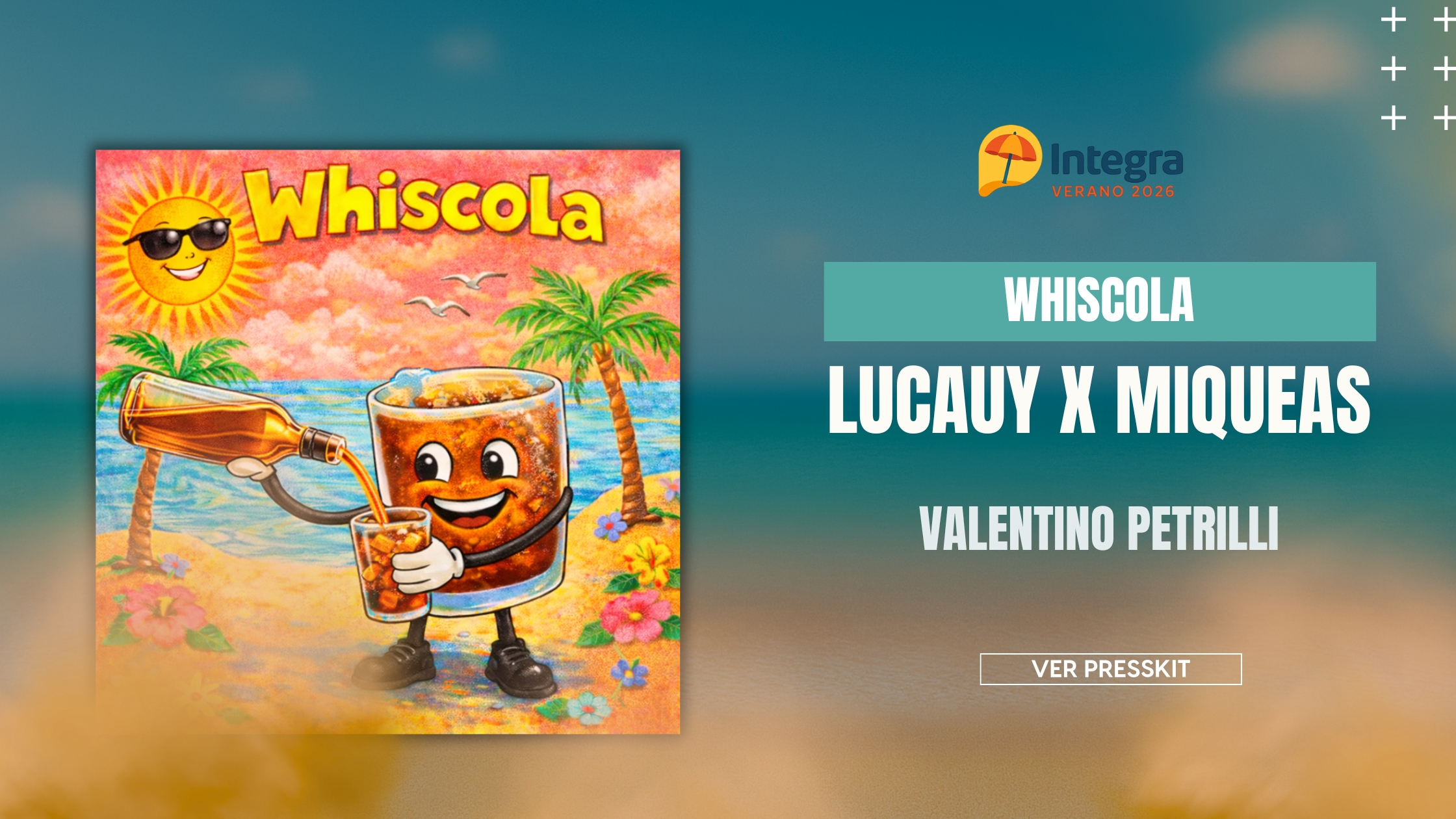 “Whiscola”, el nuevo single que reúne a tres artistas en ascenso: Valentino Petrilli, Lucauy y Míqueas. La canción promete convertirse en uno de los temas más escuchados de la temporada, combinando un sonido urbano bailable con una energía fresca y veraniega.