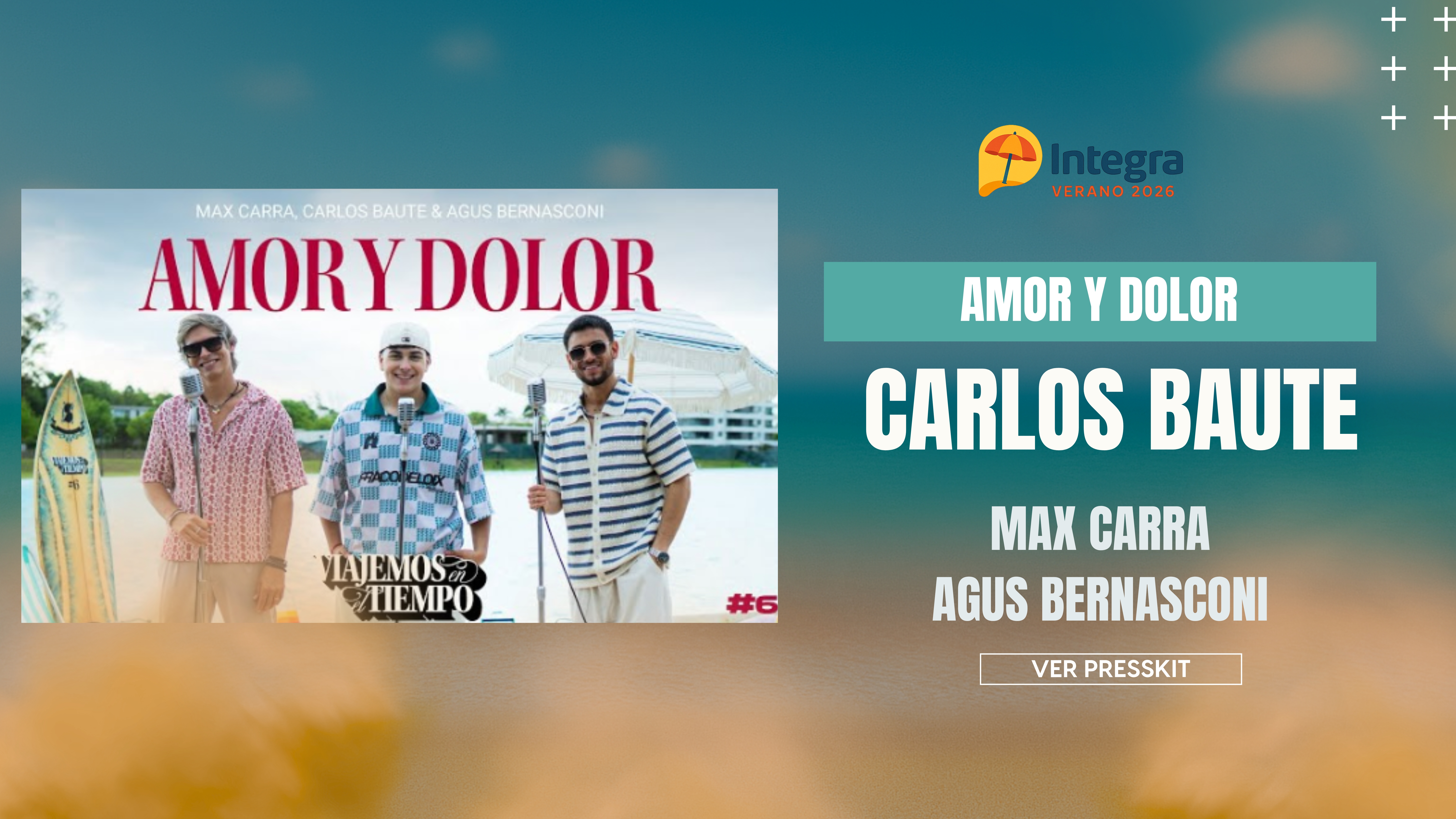 Carlos Baute presenta oficialmente la nueva versión cumbia de su clásico “Amor y Dolor”, acompañado por dos de las voces jóvenes más destacadas de la región: Max Carra y Agustín Bernasconi.